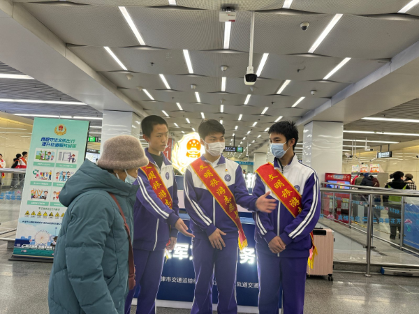 1月24日,随着2026年春运大幕即将拉开,天津文明旅游志愿者春运志愿服务活动在地铁营口道站正式启动。24名身着统一志愿服装的文明旅游志愿者们,以饱满的热情投入到中国青年志愿服务春运“暖冬行动”中,在这座天津市客流量最大的换乘站点之一,用实际行动诠释“奉献、友爱、互助、进步”的志愿精神,为奔波在归乡路上的旅客送去贴心关怀。